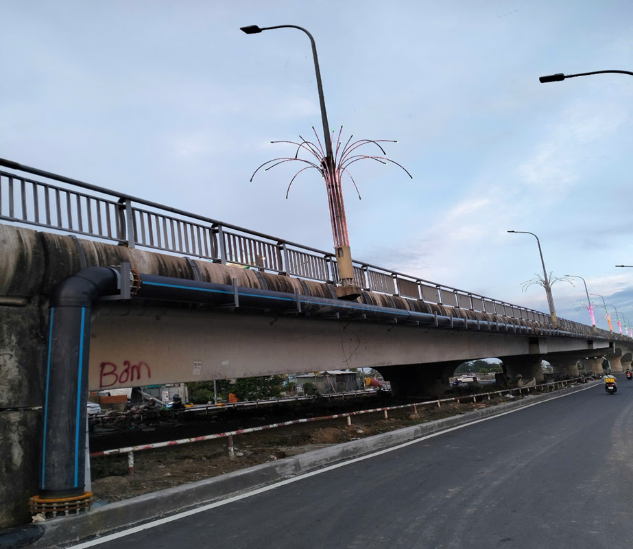 Tuyến ống chuyển tải HDPE D400 đi qua cầu Hưng Lợi để chuyển nước từ Nhà máy nước Cần Thơ 1 sang vùng phục vụ